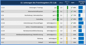 Die Analyse auf Standortebene bietet die Basis für Ihre Planung und systematischen Erfahrungsaustausch: Der Betreuer der Zentrale kann die Analyse für seine Beratung und Betreuung nutzen, die Standorte erhalten direkt eine Stärken-/Schwächenanalyse mit Prioritäten und sie können sich im Rahmen von Benchmarking-Workshops über ihre Einzelergebnisse austauschen – eine große Stärke von Franchisesystemen und Verbundgruppen liegt im Erfahrungsaustausch zwischen Unternehmern.